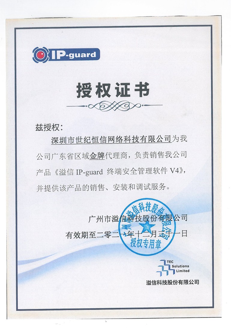 IP-Guard金(jīn)牌代理(lǐ)資質文(wén)件(jiàn)